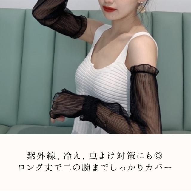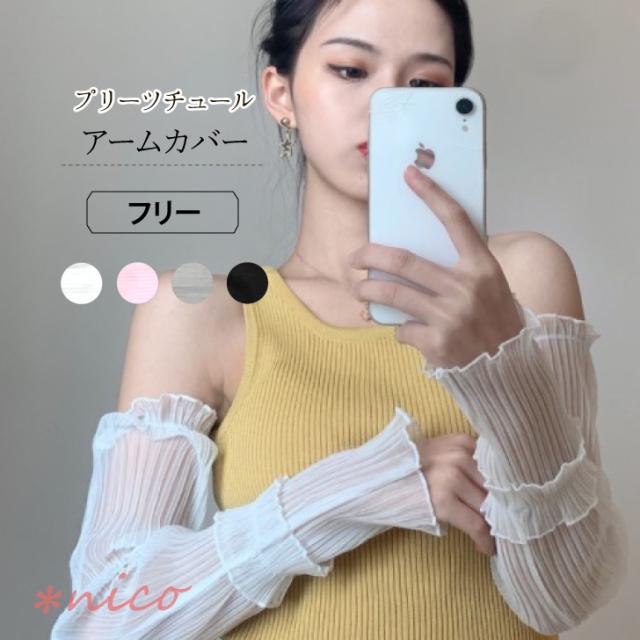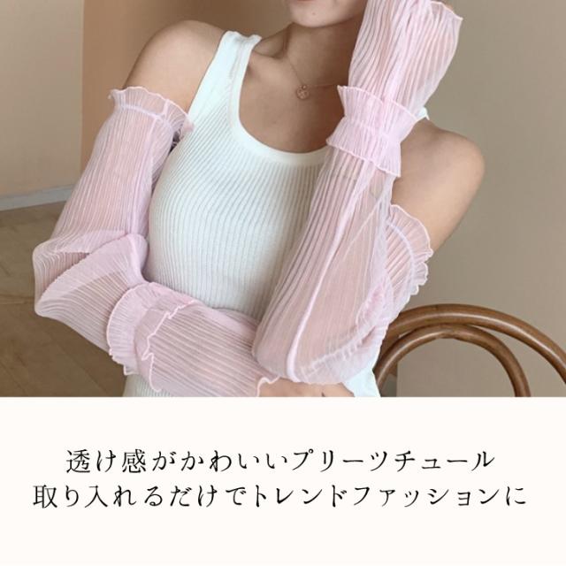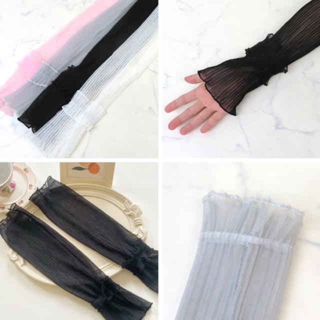 アームカバー (L-AMVO-01)[★メール便OK]【メール便送料無料】 【 フリーサイズ アームスリーブ レディース 涼しい 透け感 シアー 可愛い トレンド フリルトリム プリーツ 紫外線カット 】