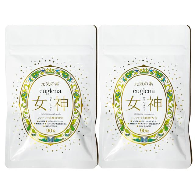 元気の素 ユーグレナ女神 90粒×2個 2か月分 妊婦ok 石垣島ユーグレナ使用 特許成分シンデレラ乳酸菌配合 マルチビタミン・αリポ酸・コエンザイムQ10・LPS免疫ビタミン・マンゴスチンアクア・リポソーム化ビタミンC