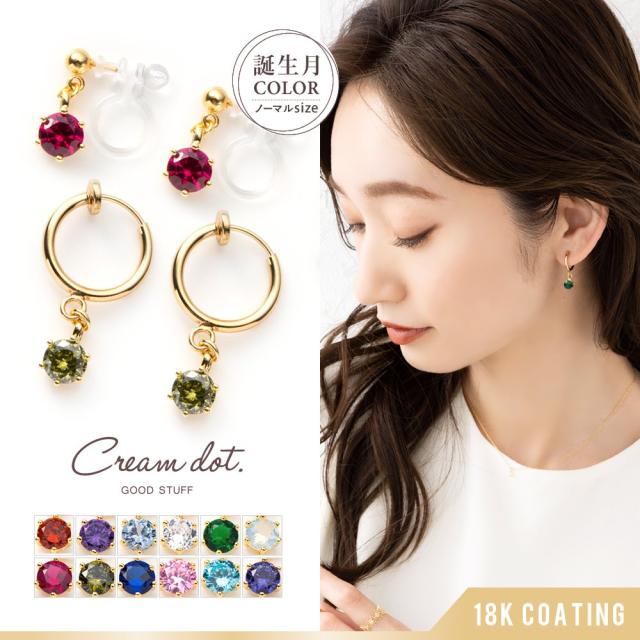 【ゆうパケットOK】イヤリング フープイヤリング 18kコーティング レディース 樹脂イヤリング 揺れる ノンホールピアス ピアス見え 誕生月カラー 誕生月色 誕生カラー キュービックジルコニア ビジュー 大人 華奢 ゴールド outlet