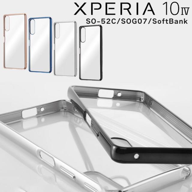 Xperia10IV SO-52C SOG07 SoftBank TPUソフトケース メタリックフレーム ピンクゴールド ブルー シルバー ブラック クリアケース シンプル おしゃれ エクスペリアテンマークフォー メール便送料無料