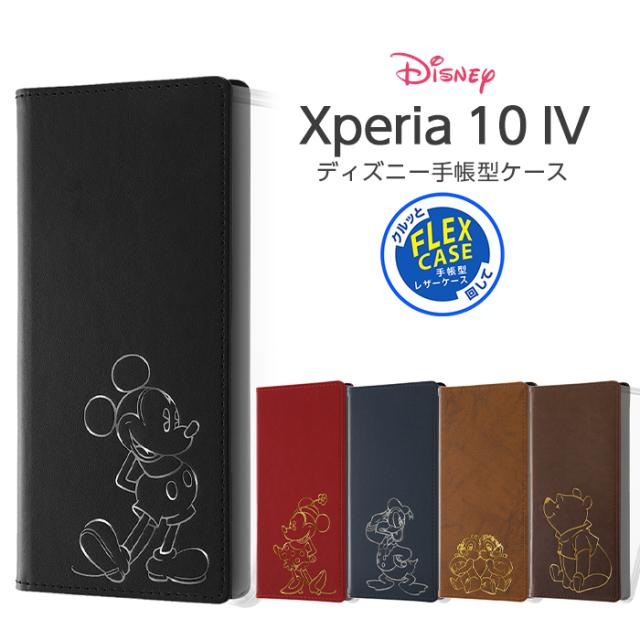 Xperia 10 IV ケース 手帳型 SOG07 SO-52C ディズニー キャラクター 手帳型ケース FLEX CASE ホットスタンプ ミッキー ミニー ドナルド チップ&デール プーさん かわいい エクスペリア10 4 エクスペリア 10 マーク4 Xperia10?W