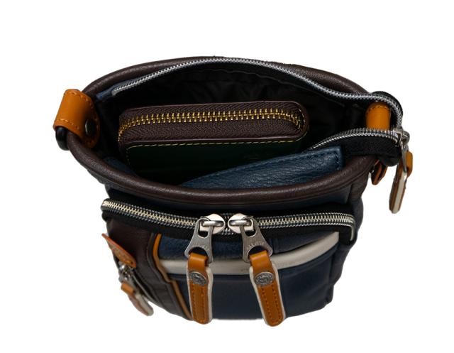 ■開口部はシングルファスナー、マチのある前面ポケットはWファスナー