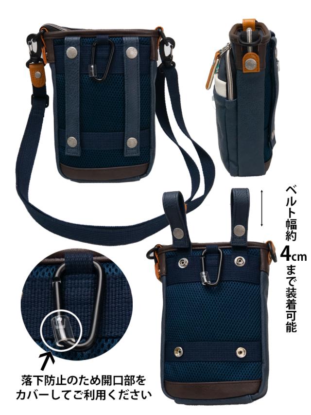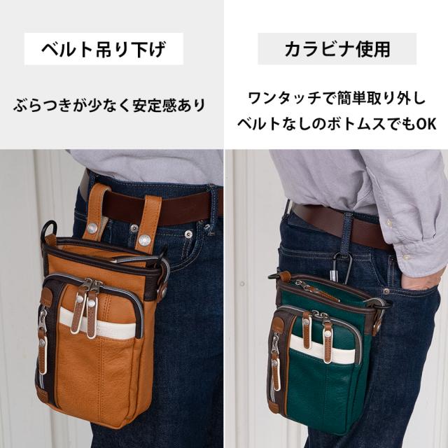 ■ショルダーベルト・カラビナが付属しており、背面のベルトループでベルトポーチにもなる3WAYバッグです