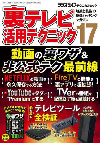 テレビのデジタル化以降、続々と生み出されてきた視聴&録画に関する裏ワザ。そんなテレビの裏ワザ10年間分を別冊付録に総まとめ! ネタ数はなんと100超!! VHSビデオを4K画質で保存する方法、ネカフェの有料VODを自宅で楽しむ手口、地デジ用八木アンテナの自作法…など、ヤバすぎるネタから実用ワザまで一気に振り返ります。あの時世間を騒がせた裏テレビツールも続々登場