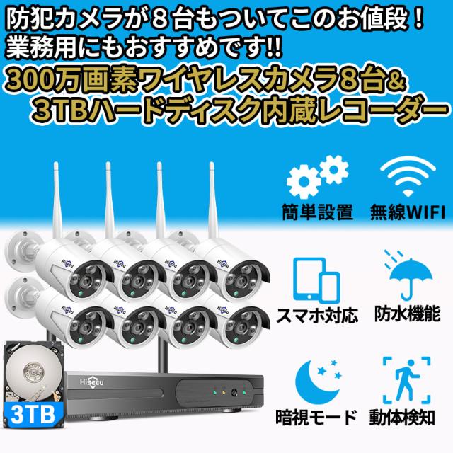 防犯カメラ 屋外 防犯カメラ屋外 ワイヤレス 工事不要 家庭用 録画機能付き 防犯カメラセット 8台 監視カメラ カメラ ワイヤレス防犯カメラ 屋内 室内カメラ 防犯グッズ Wi-Fi レコーダー スマホ 連動 防水 自動録画 録画 録画機能