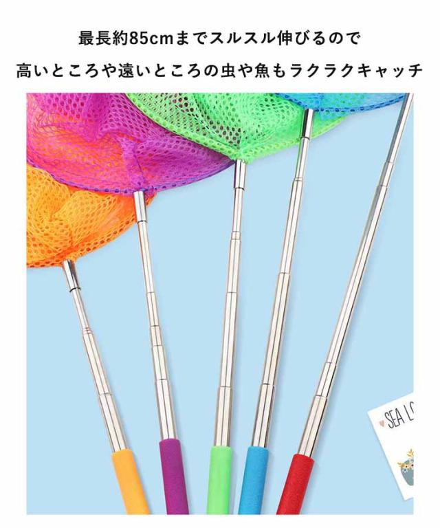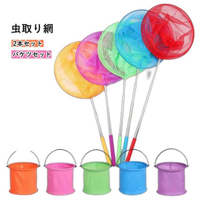 虫取り網 2本 セット 伸縮式 伸縮 長さ約37-85cm 折りたたみ バケツ 軽量 コンパクト 伸縮タイプ 昆虫採集 魚取り 魚捕り網 虫取りあみ 山遊び 川遊び アウトドア 子供 夏 夏休み