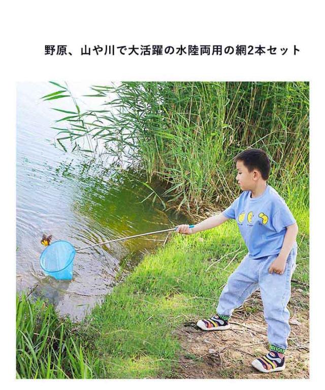 | 野原、山や川で大活躍の水陸両用の網2本セット。 軽くてコンパクト♪お子様も持ちやすいサイズ感・滑りにくいブリップ付き。 最長約85cmまでスルスル伸びるので、高いところや遠いところの虫や魚もラクラクキャッチ。 約37cmとコンパクトなのでリュックやバッグに入れて持ち運べる。 公園や山で虫を、川で魚などを採るのにぴったり。他にも虫が苦手な人へ害虫除去用に。お家に1つあると便利ですね。 | |