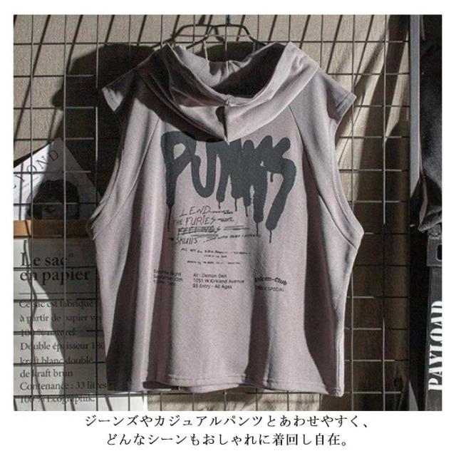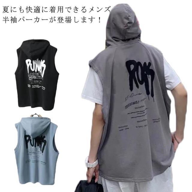 ノースリーブ パーカー メンズ タンクトップ 夏 ヒップホップ サマーパーカー スポーツウェア ビッグシルエット バスケットボール トレーニング ジム ランニング ストリート系 お洒落