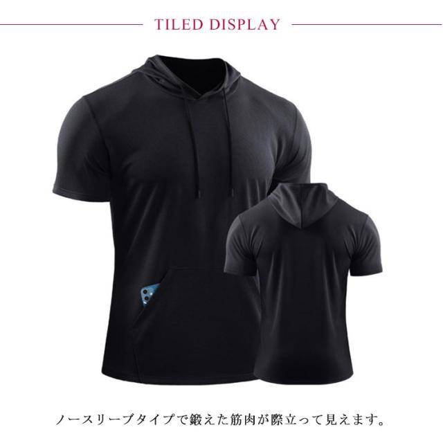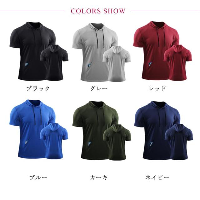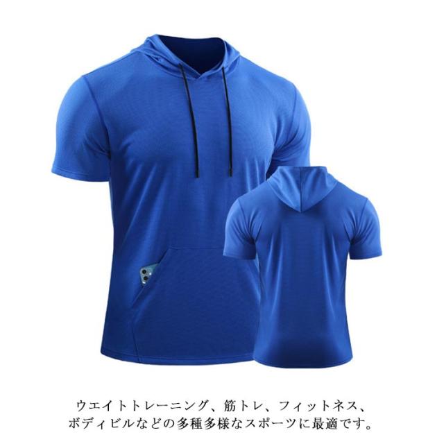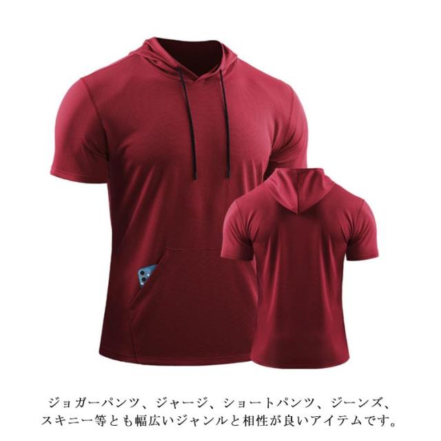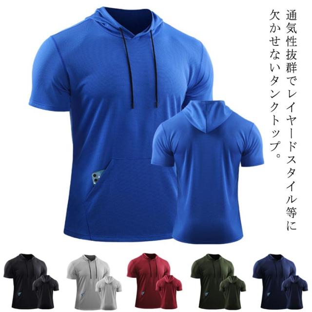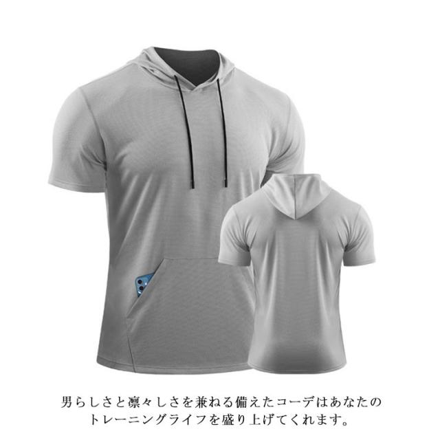 パーカー メンズ 夏 半袖 夏服 パーカ 吸汗 速乾 プルオーバーパーカー フード付き トップス tシャツ トレーニング フィットネス スポーツ 筋トレ 大きいサイズ 無地 薄手 ゆったり かっこいい