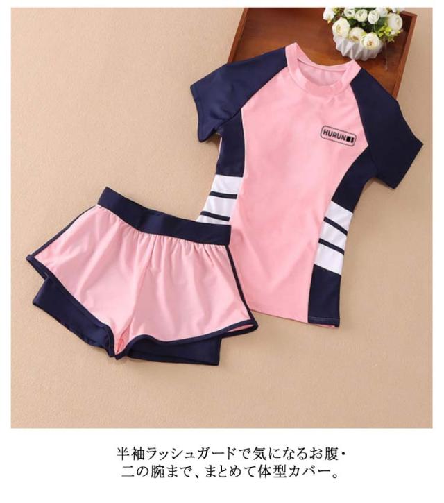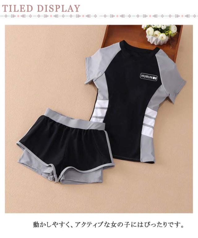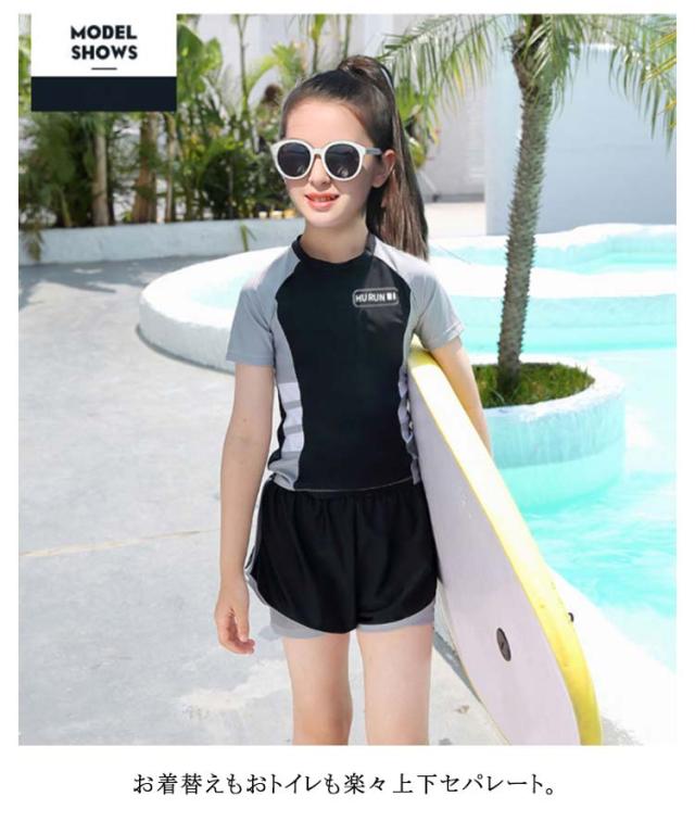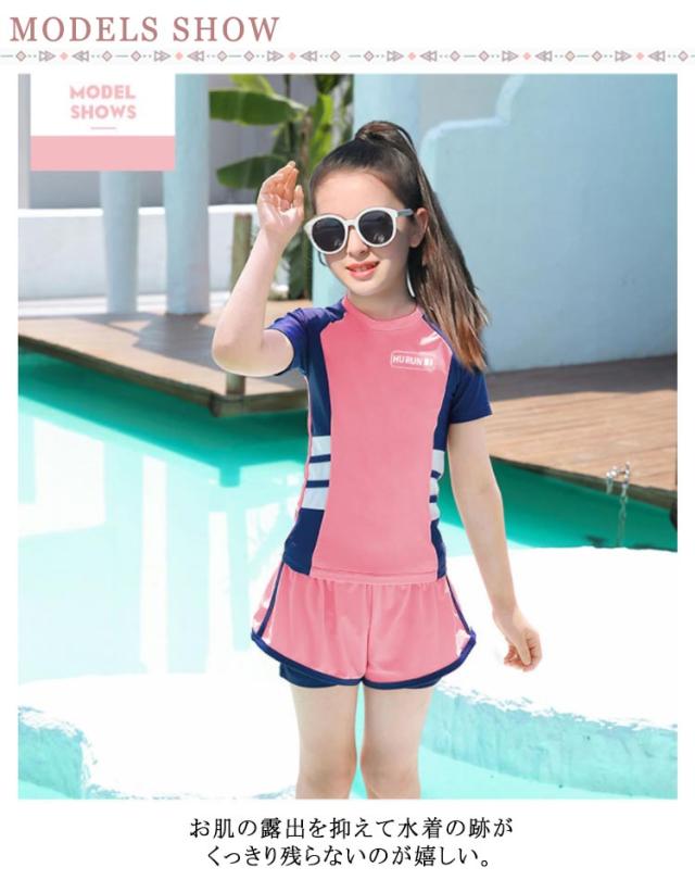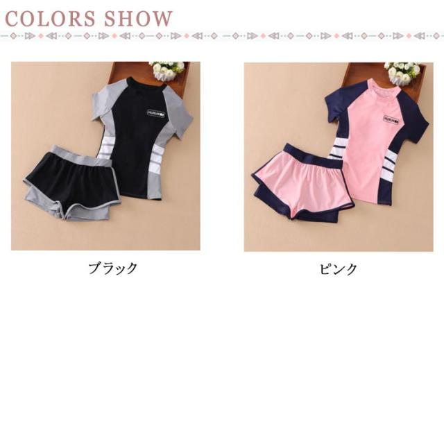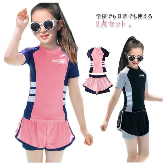 キッズ水着 女の子 セパレート 2点セット 半袖 子供 スクール水着 トップス パンツ ジュニア 小学生 ガールズ 子ども スイムウェア みずぎ スイミング 女児 学校 プール 水泳 ミズギ UV対策 ビーチ 練習着 水遊び 吸汗速乾 送料無料