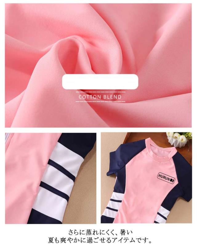 | 学校でも日常でも使える2点セット?。 お肌の露出を抑えて水着の跡がくっきり残らないのが嬉しい。 お着替えもおトイレも楽々上下セパレート。 インナーパンツ一体型!透けずに安心な着心地。 動かしやすく、アクティブな女の子にはぴったりです。 半袖ラッシュガードで気になるお腹・二の腕まで、まとめて体型カバー。 さらに蒸れにくく、暑い夏も爽やかに過ごせるアイテムです。 | |
