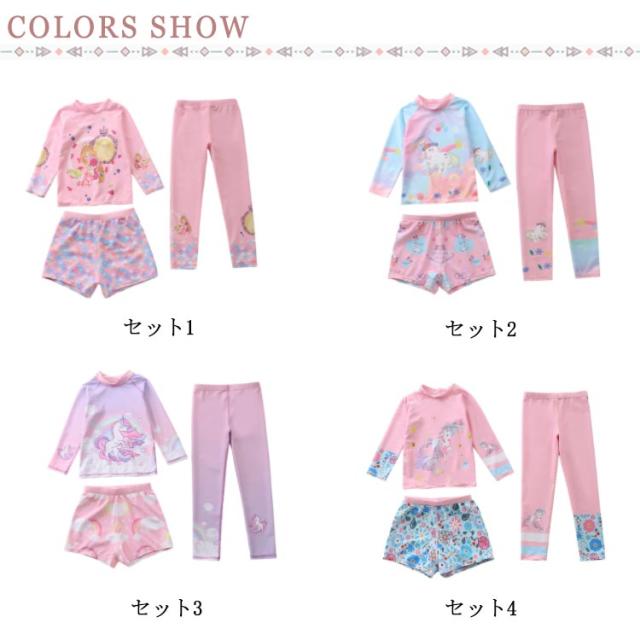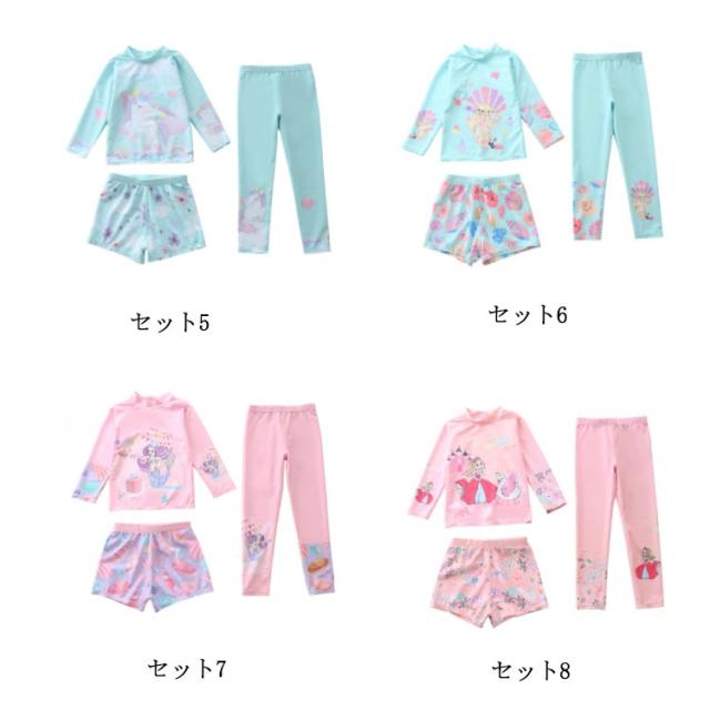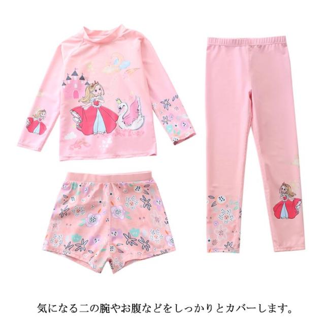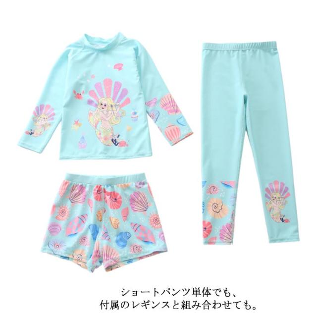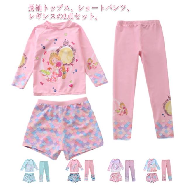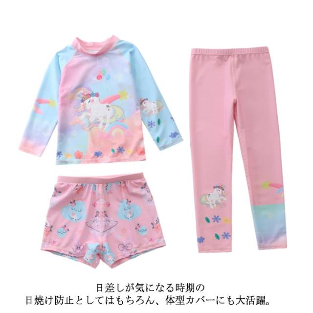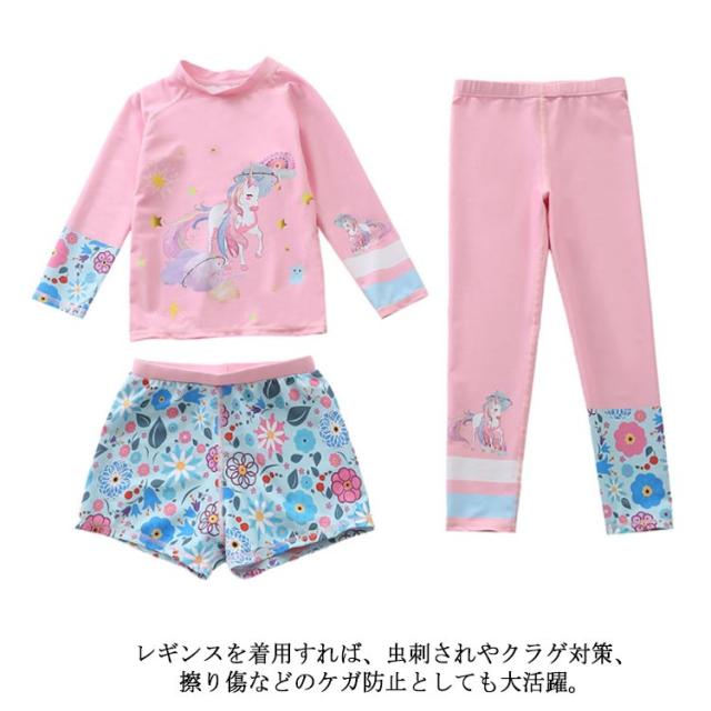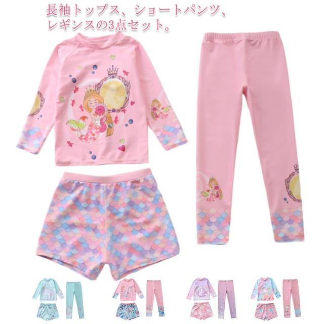 水着 キッズ 女の子 セパレート 3点セット 可愛い ラッシュガード 長袖 ショートパンツ レギンス 子供 ベビー ジュニア フィットネス水着 ガールズ みずぎ スイムウェア 海水浴 UV対策 日焼け防止 100-150cm 女児 水遊び プール 海 送料無料
