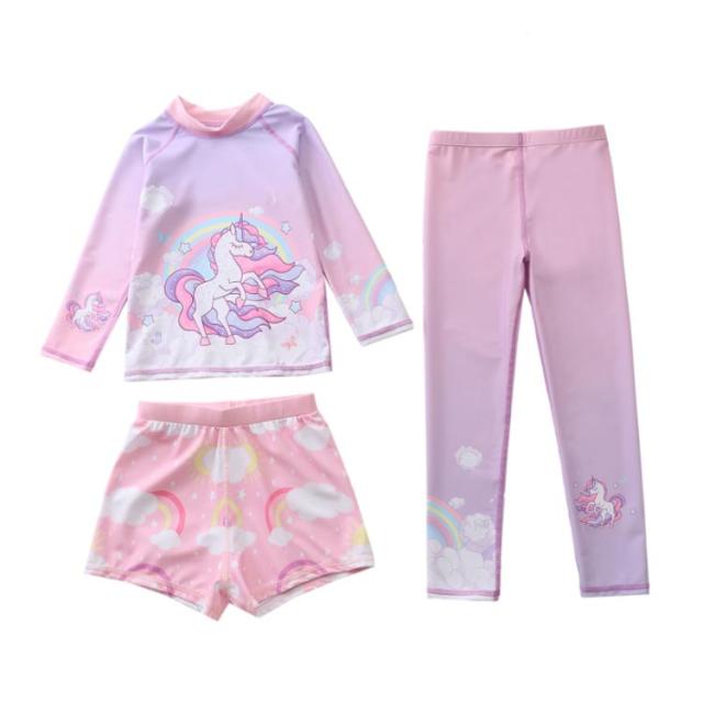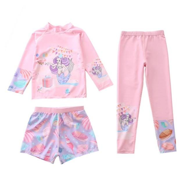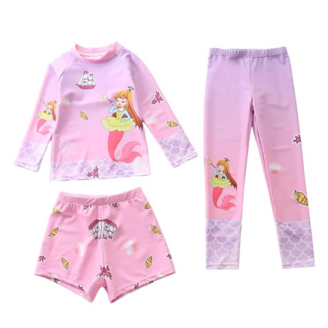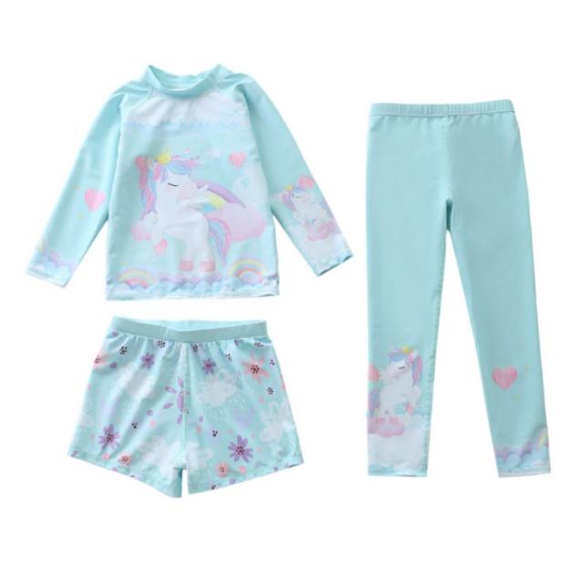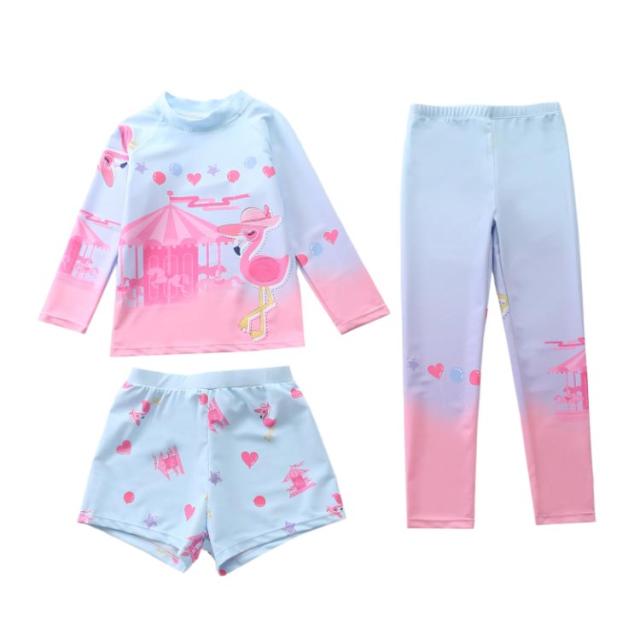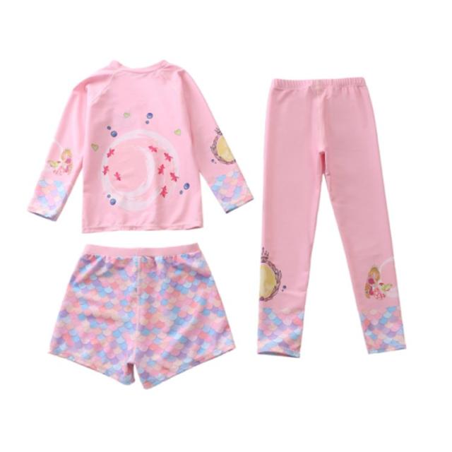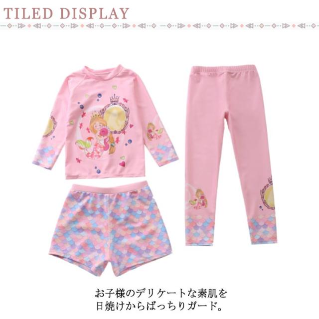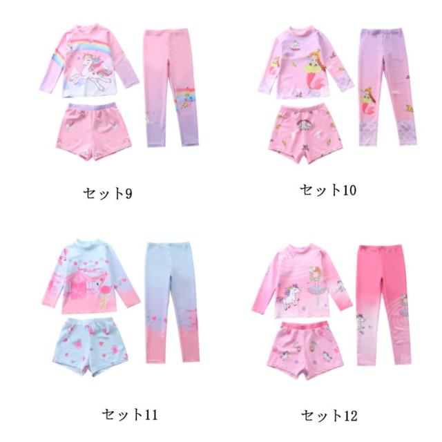 水着 キッズ 女の子 セパレート 3点セット 可愛い ラッシュガード 長袖 ショートパンツ レギンス 子供 ベビー ジュニア フィットネス水着 ガールズ みずぎ スイムウェア 海水浴 UV対策 日焼け防止 100-150cm 女児 水遊び プール 海 送料無料