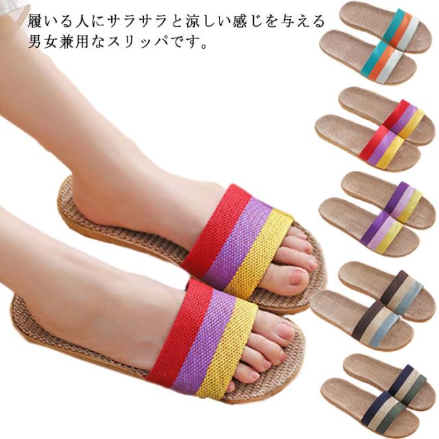スリッパ レディース メンズ ルームシューズ 春夏 室内靴 室内履き 静音 綿麻混 軽量 可愛い 滑り止め 来客用 部屋用 通気性 柔らかい 快適 カップル 夫婦