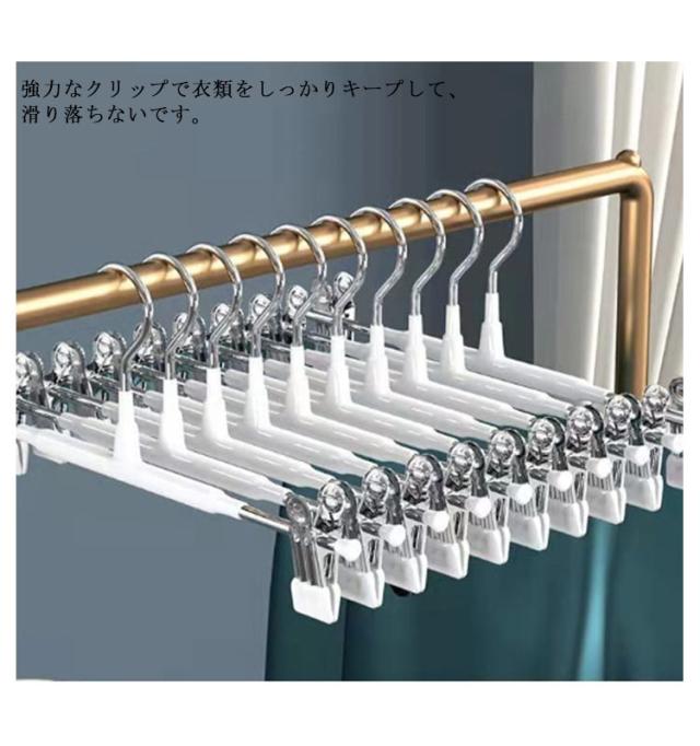 ズボンハンガー スカートハンガー クリップ付き 洗濯ハンガー シワ防止 360度回転 サイズ調節可能 10本セット 型崩れ防止 タオル用 滑り止め 乾湿両用 家庭用