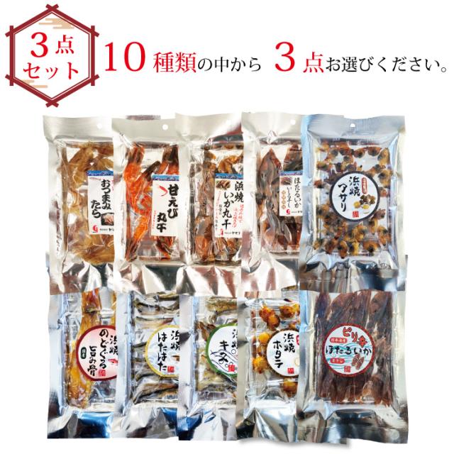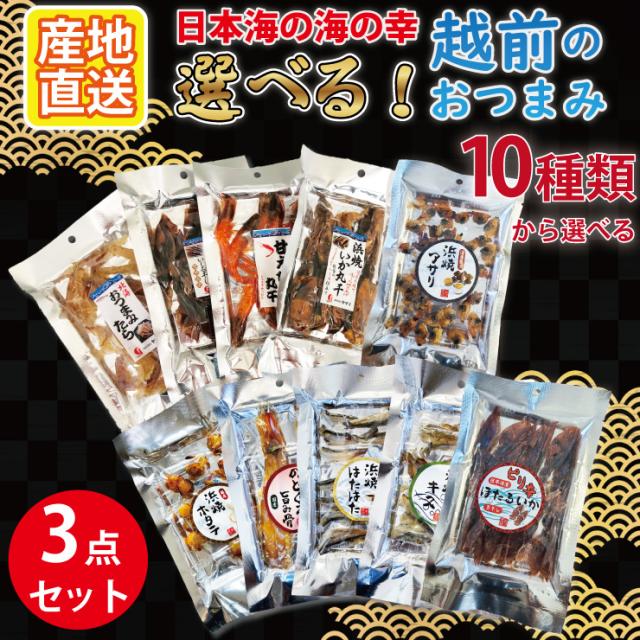 10種類から選べる 越前のおつまみ 3点セット おつまみ 3点 食べ比べ セット ほたるいか素干し 甘エビ丸干 おつまみたら 焼き丸干いか キス ハタハタ のどぐろ 浜焼き 珍味 乾物 酒の肴 お酒のおつまみ 晩酌セット ギフト 取り寄せ グルメ 産地 送料無料 海鮮 北陸応援