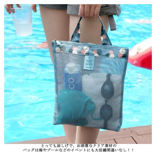 メッシュバッグ ビーチバッグ レディース メッシュバッグ プールバッグ おしゃれ スイムバッグ 海 ビーチグッズ 花柄 軽量 軽め 送料無料