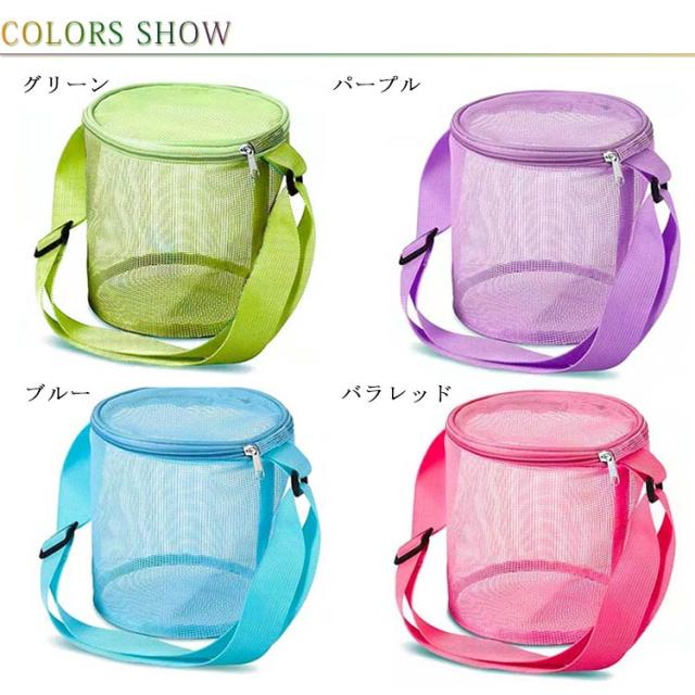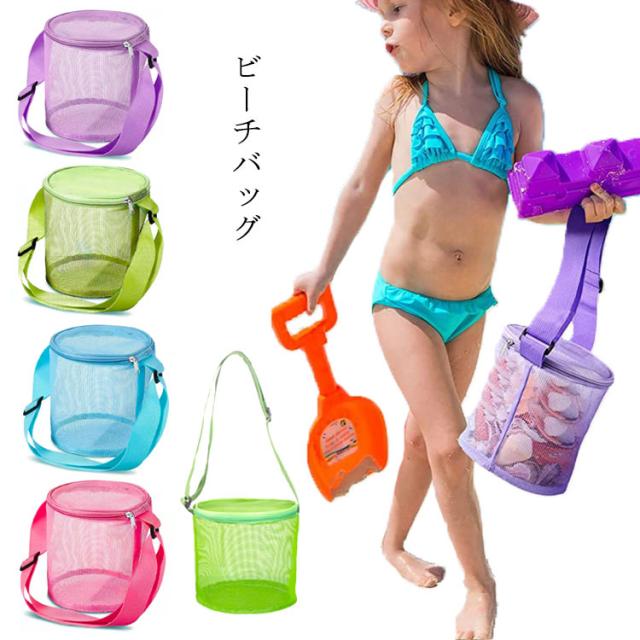 ビーチバッグ 子供 メッシュ バッグ 円形 大容量 プールバッグ 女の子 男の子 キッズ お砂場バッグ 水陸両用 メッシュビーチバッグ 水遊び 海水浴 貝殻 おもちゃ 収納袋 クリアバッグ トートバッグ 斜め掛けバッグ スイミングバッグ