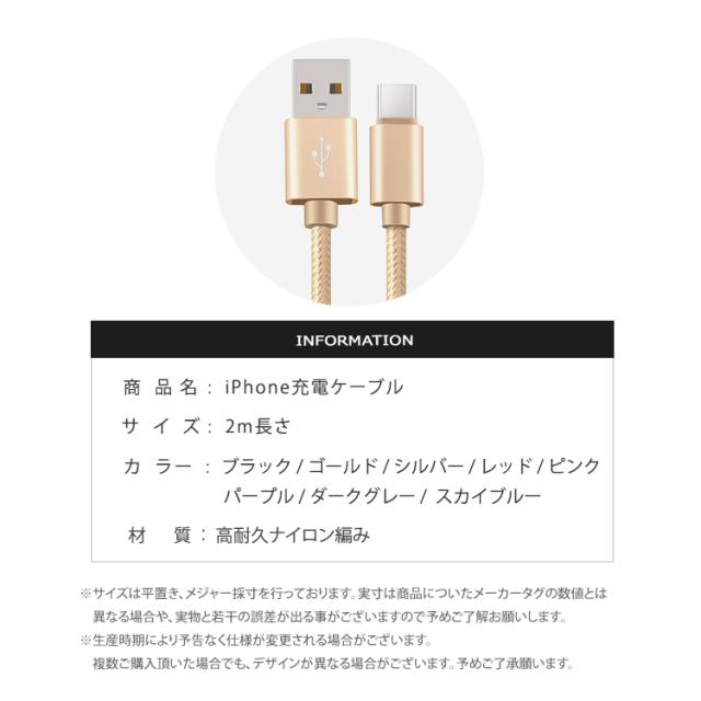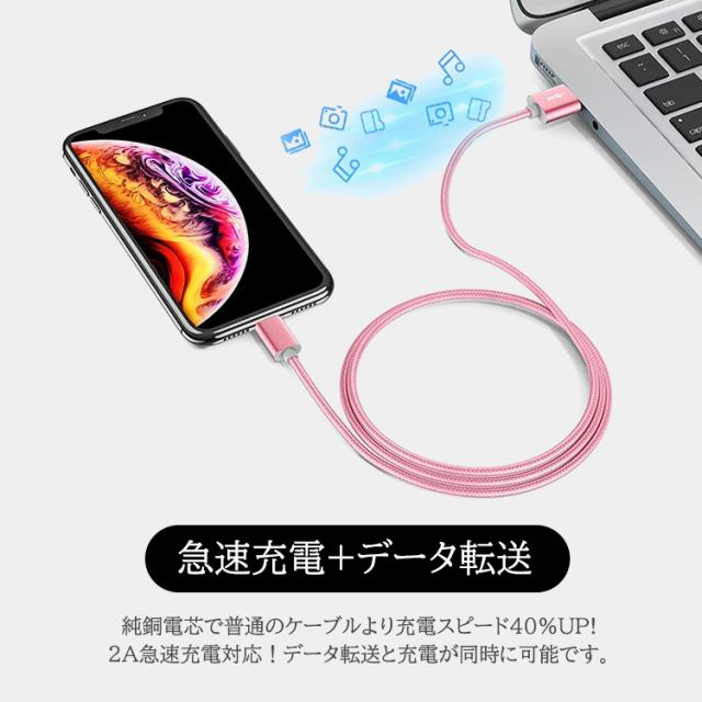充電ケーブル iPhone用ケーブル 2m iPhone用 急速充電ケーブル 長さ 2m 充電器 データ転送ケーブル USBケーブル iPhoneナイロン編み