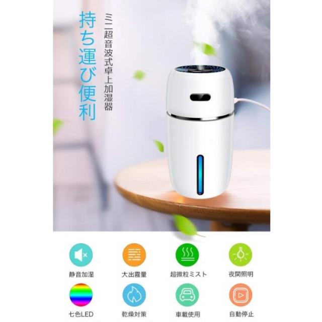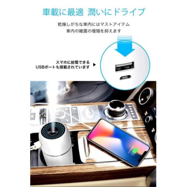 加湿器 卓上 アロマ 超静音 車用加湿器 10時間連続加湿 七色LEDライト 小型 空焚き防止 部屋 車載 オフィス 乾燥対策