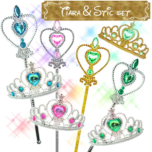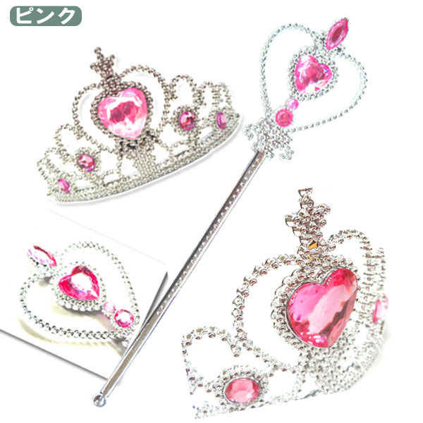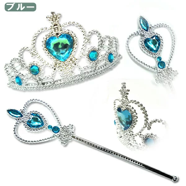 【最安値挑戦中】ティアラ&ステッキ セット 子供用 3色 コスチューム用小物 ブルー ピンク 4color お姫様 プリンセス 女の子 魔法 ステッキ スティック