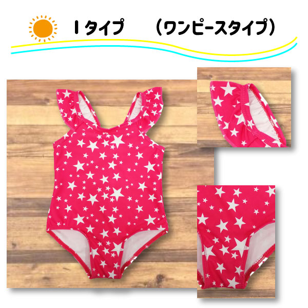 ◆ワンピースタイプ(オールインワン)は上下で一体感のあるかわいいデザイン。水中で動いてもお腹が出ないので、体温が逃げにくく、お子様の体が冷えるのを軽減してくれます!