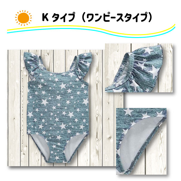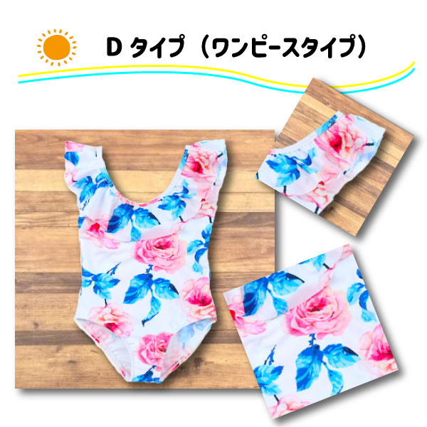 ◆ワンピースタイプ(オールインワン)は上下で一体感のあるかわいいデザイン。水中で動いてもお腹が出ないので、体温が逃げにくく、お子様の体が冷えるのを軽減してくれます!