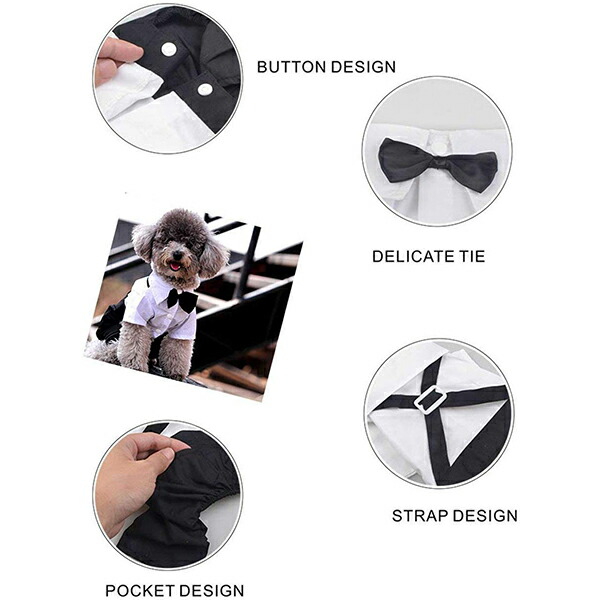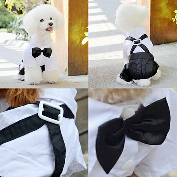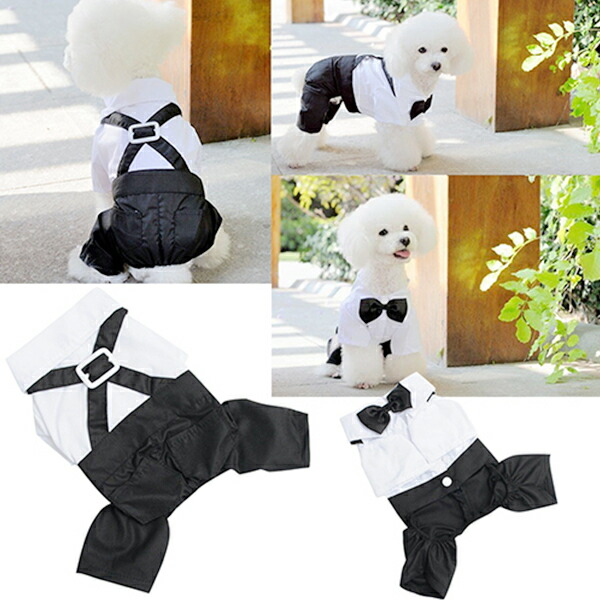 【最安値挑戦中】ネコポス便で発送! 犬用 タキシード 犬服 フォーマル 結婚式 礼服 つなぎ ワンちゃん ドッグウエア 犬 服 蝶ネクタイ 黒 コスプレ