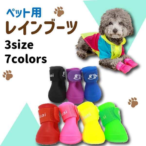 【最安値挑戦中】犬用 レインブーツ 4足set 愛犬 ペット用 長靴 散歩 かわいい 雨 雪 履かせやすい ドッグシューズ 保護 シリコン 安全 防水 肉球 カラフル 小型 中型 犬 わんちゃん 滑り止め 7色 S M L ネコポス送料無料