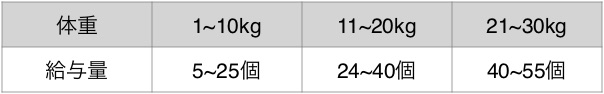 ・上記給餌量を目安に愛犬の体重及び健康状態を考慮して与えて下さい。