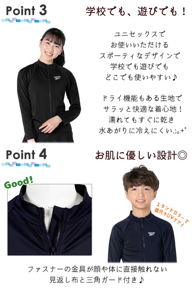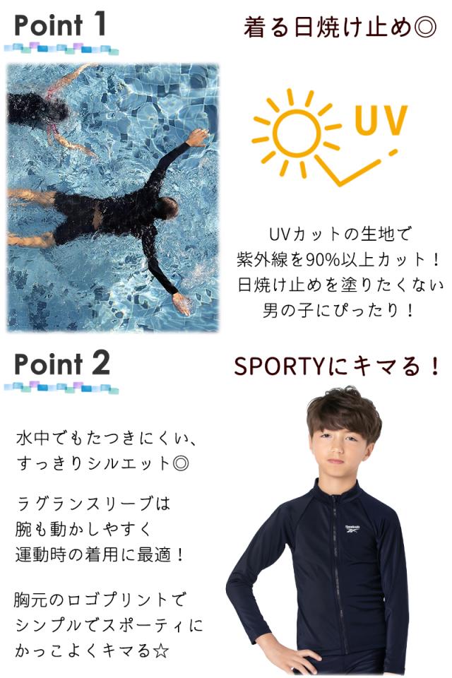 Reebok リーボック スクール水着 ジュニア キッズ 水着 ラッシュガード 男の子 女の子 130 140 150 《レビュー記入でメール便無料》 160 170 スクール 水着 学校 授業 スイミング プール 体型カバー 長袖 ファスナー スポーティ ロゴ 無地 小学生 中学生 高校生 120-201