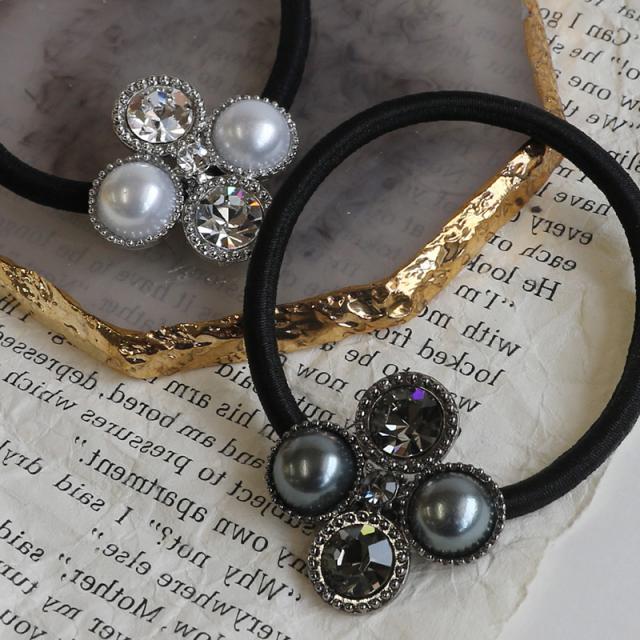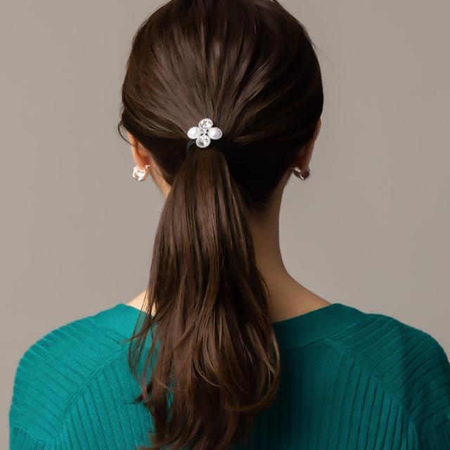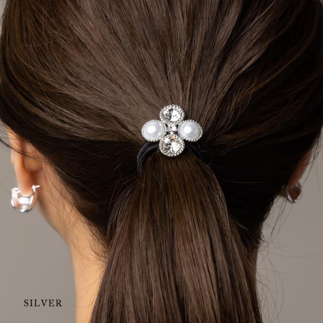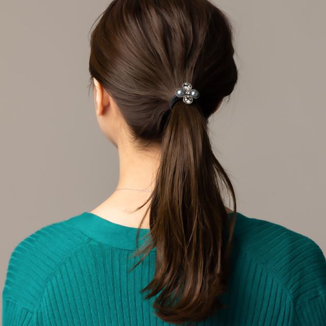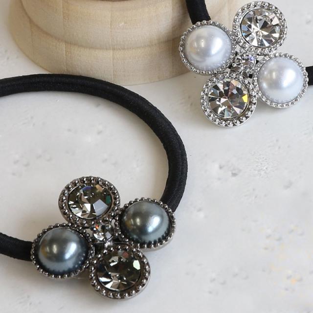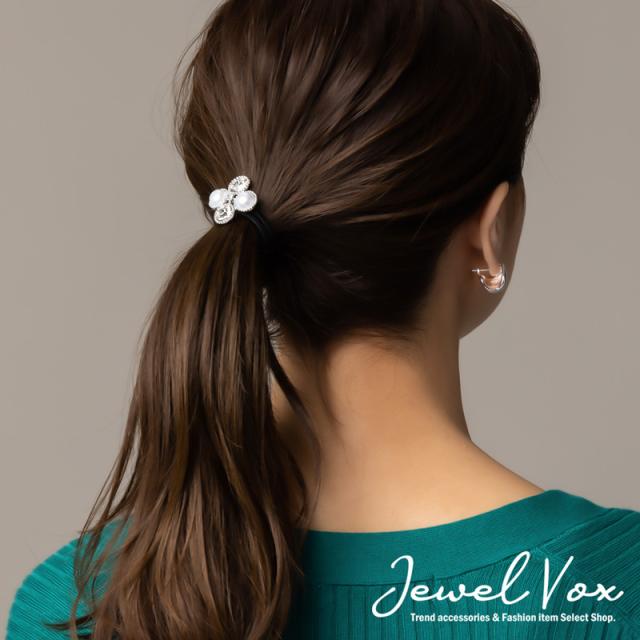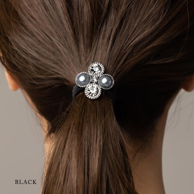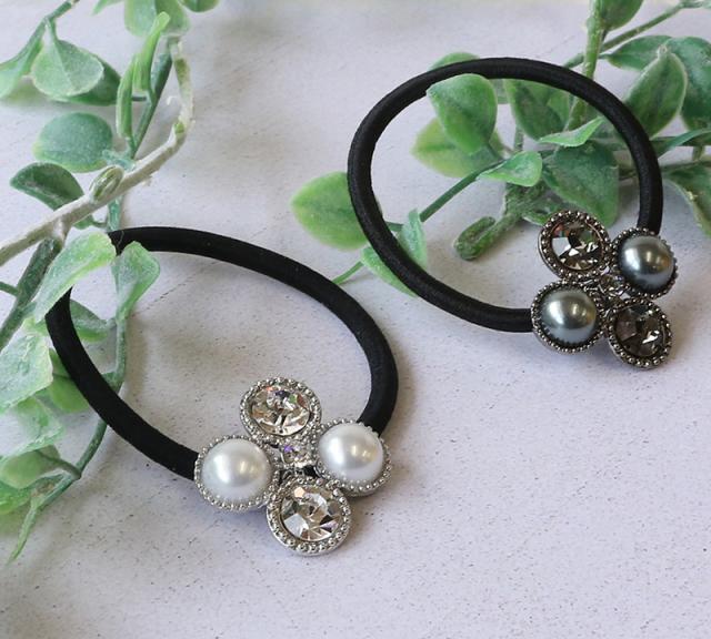 ヘアゴム ヘアポニー ヘアアクセ パール ストーン デザイン シルバー ブラック シンプル 結婚式 おしゃれ 女性 ギフト 大人