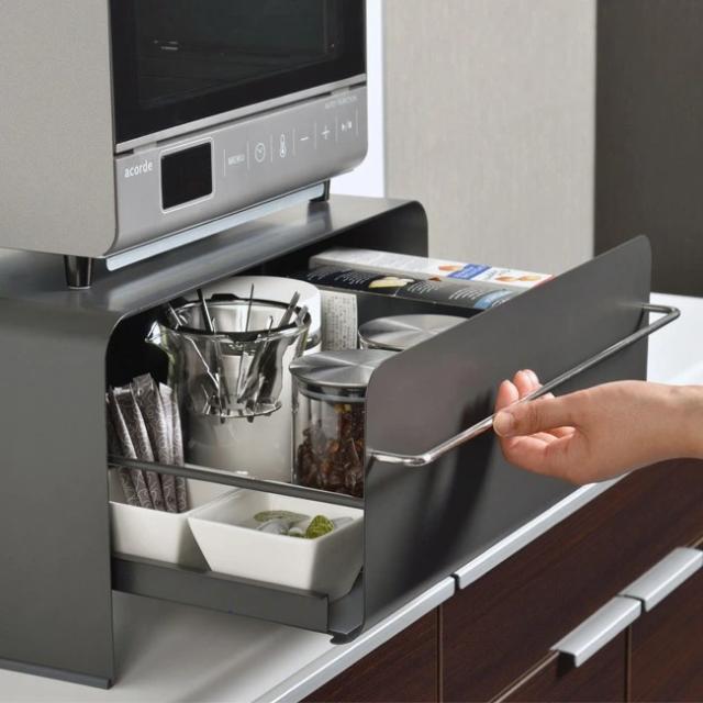 - バルミューダのトースターを載せたくて かっこいい物を探していました。 同じ白で統一して、おしゃれな空間ができて 大満足です。引き出し式も購入の決め手になりました。 大容量の収納ができて、中身がとても見...