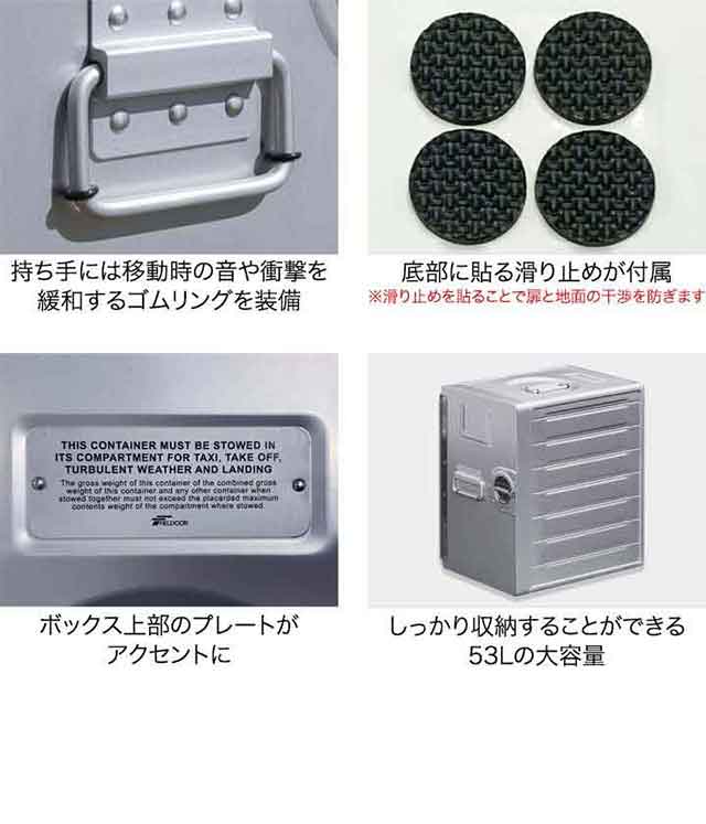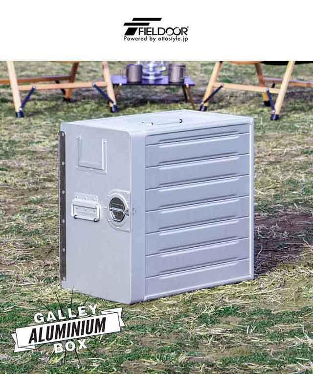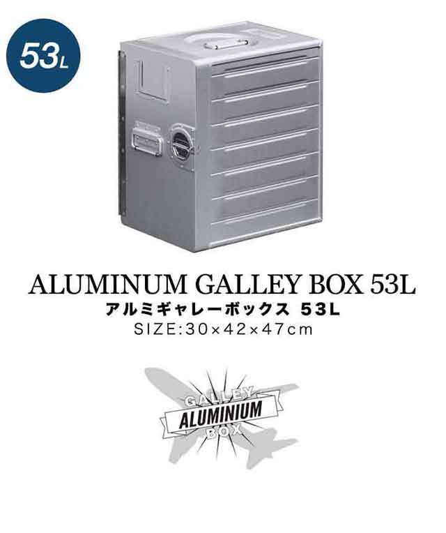FIELDOOR アルミギャレーボックス 30cm×42cm×47cm 53L 収納ボックス 収納ケース アルミ おしゃれ ギア収納 道具入れ ストッカー 収納BOX 取っ手付 軽い 箱 屋外 アウトドア ミリタリー 航空機 テーブル チェスト スタッキング キャンプ 送料無料