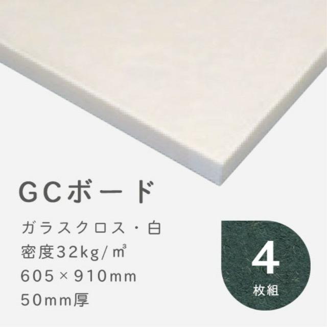 防音 吸音材 GCボード ガラスクロス(白) 密度32kg/m3 厚さ50mm 605×910mm 4枚 防音パネル 防音ボード 吸音 防音 DIY 遮音 騒音対策 ピアリビング