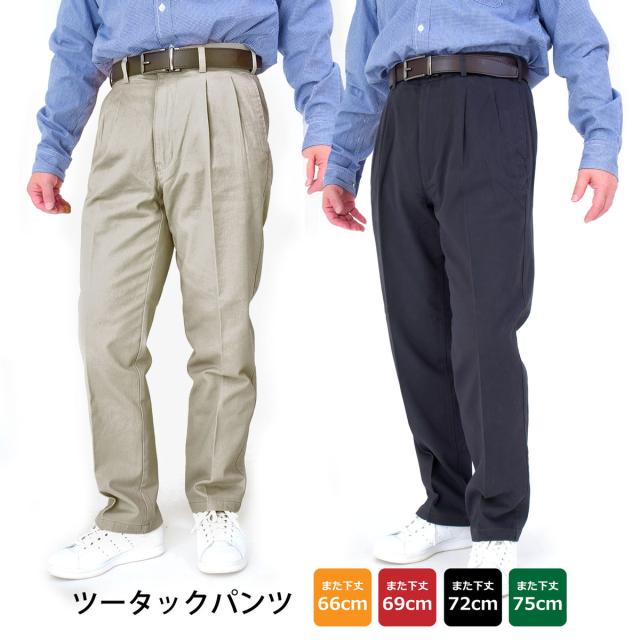 チノパン カジュアルパンツ ツータック メンズ シニア 綿100% 裾上げ加工済 ソフトな履き心地 小さいサイズ 大きいサイズ 豊富な股下サイズ 綿パン コットン 送料無料