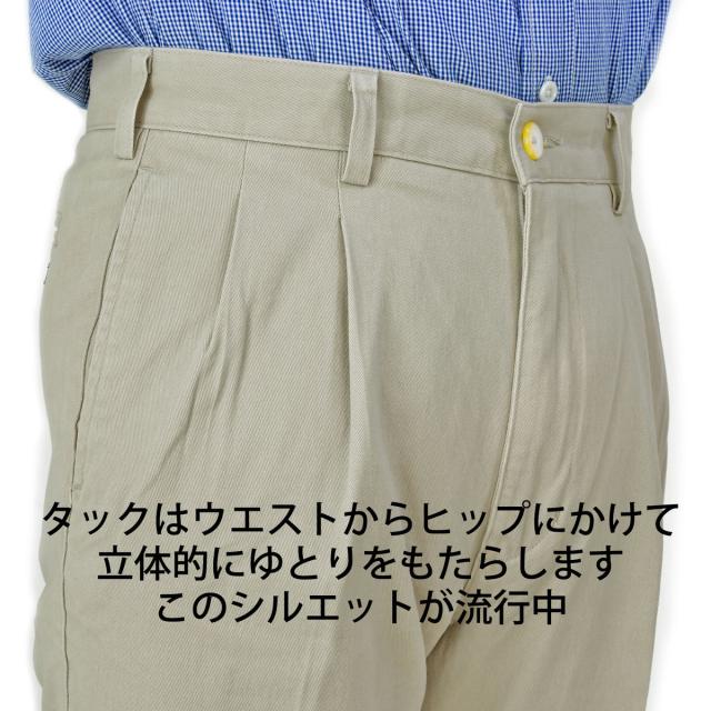 綿100%のツータックチノパン バイオウォッシュ加工でソフトな仕上がり