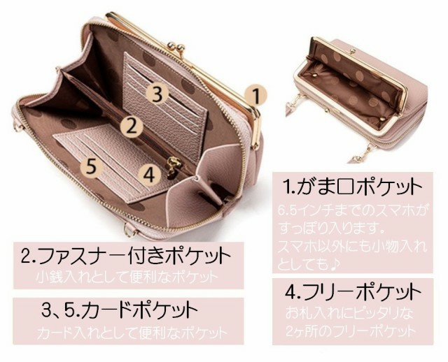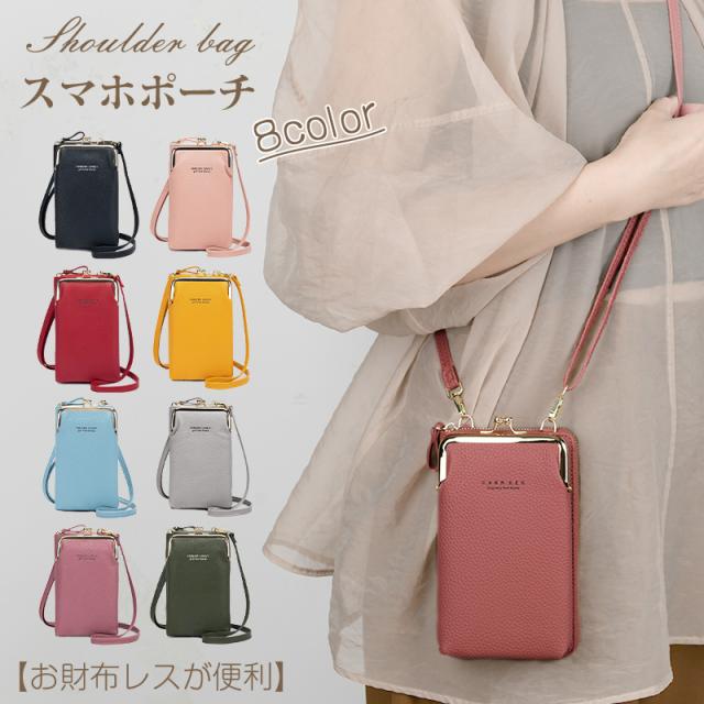 【在庫一掃セール!】スマホポーチ スマホ ポーチ がま口 ショルダー スマホポシェット レディース ショルダーバッグ スマホショルダー おしゃれ かわいい ミニショルダー 上品 肩掛け 斜め掛け ポシェット スマホポジェット 人気 PUレザー ファスナー開閉 大人可愛い