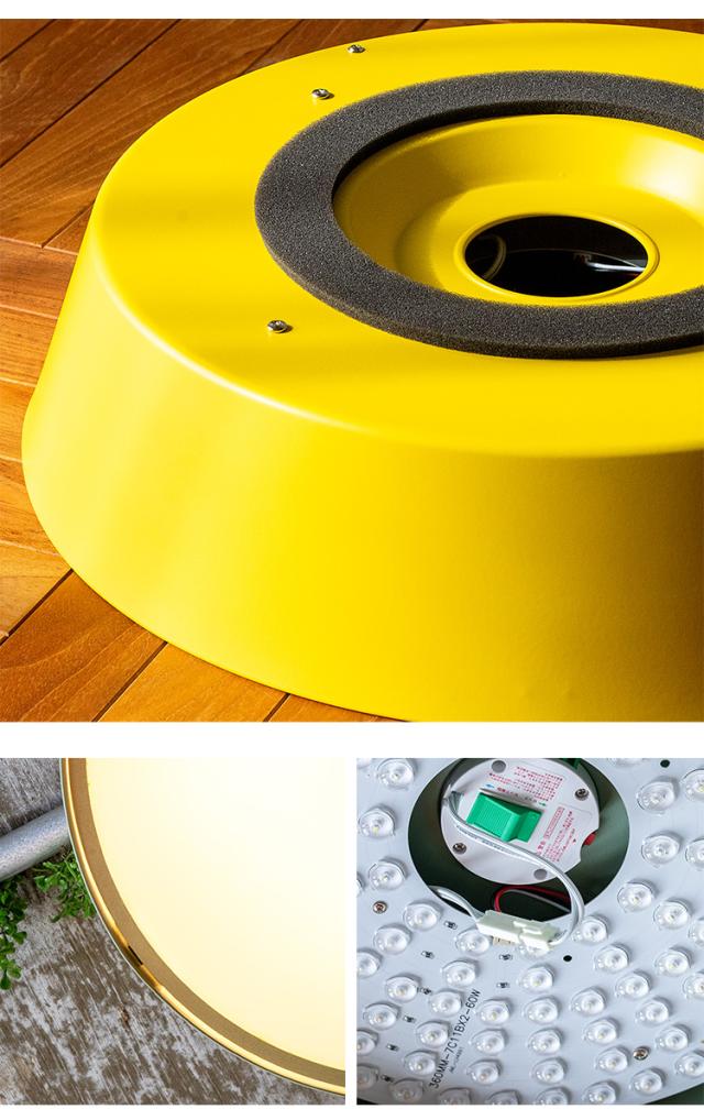 円柱形ではなく、台形型が特徴のあるデザインに個性的なカラーリングを施し、どこにもないようなLEDシーリングライトを目指しました。