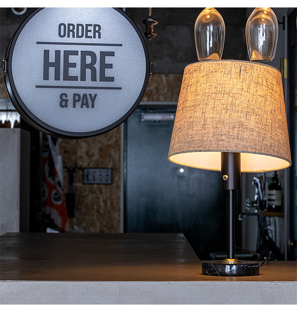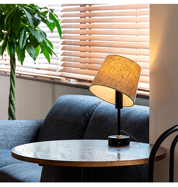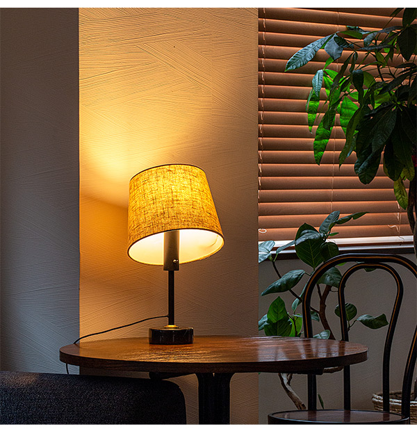 ナチュラルなファブリック、高級感のある大理石の異素材を組み合わせたおしゃれなテーブルライト。