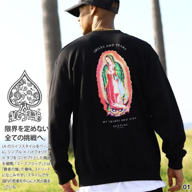 【72%OFF】ACEFLAG トレーナー ブランド スケボー 長袖 スウェット 裏パイル メンズ 全3色 大きいサイズ エースフラッグ 聖母 マリア 聖母マリア チカーノ ローライダー b系 ヒップホップ ファッション ダンス ストリート系 服 AF-TL-SW-023