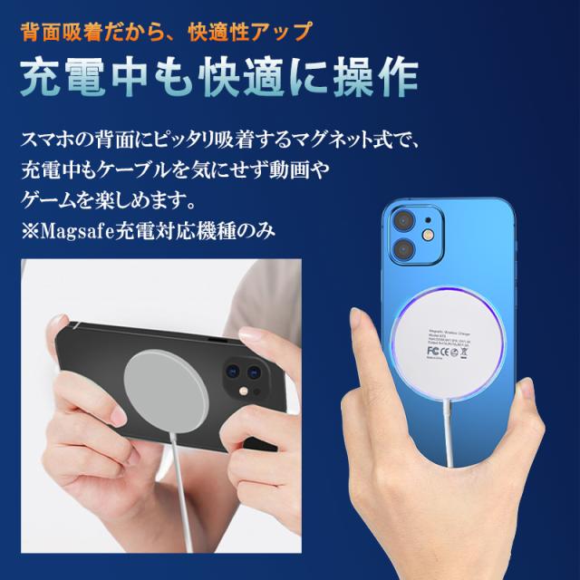 ◎iphone14/iphone13/iphone12 全シリーズmagsafe急速充電対応します。また、他のブランドのスマートホンがqi充電対応できればこの充電器もワイヤレス充電器として使えます。◎36粒強力マグネット使用、iphone13、12シリーズに使う時、適当に置くだけで、スマホ本体にしっかり吸着し、充電中の位置ズレ発生しません。