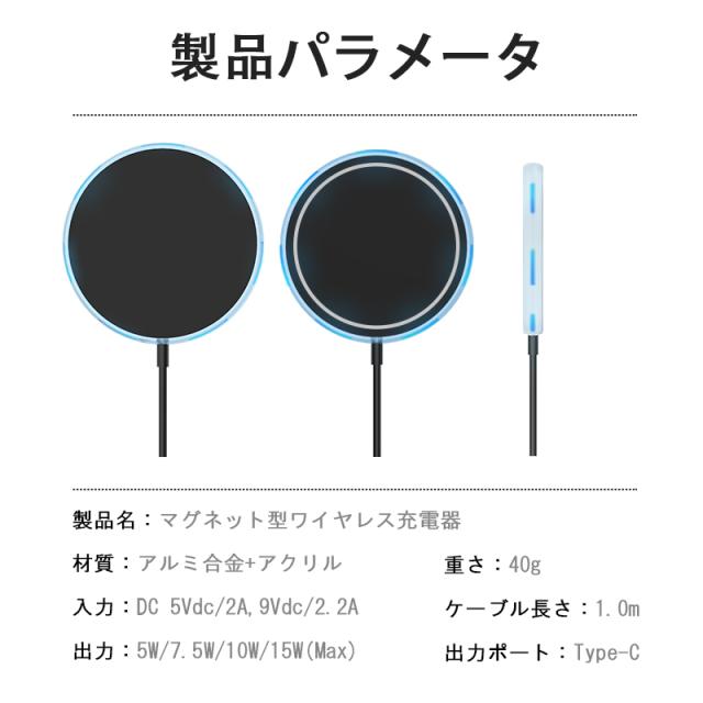 apple magsafe充電器 15W充電 iPhone14 ワイヤレス充電器 type C マグネット充電器 置くだけ充電 ピタッと充電 15W急速充電 Qi急速充電 ワイヤレスチャージャー 5W/7.5/10W/15w iPhone android アンドロイドiPhone13 iPhone12 SAMSUNG HUAWEI 送料無料