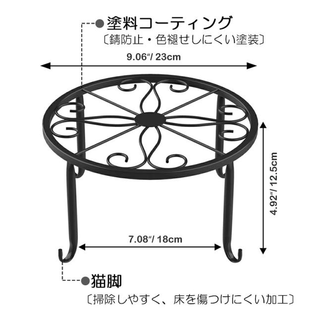 フラワースタンド 屋外 屋内 おしゃれ 6個セット 花台 スタンド 鉢スタンド アイアン プランターラック 猫脚付 観葉植物 園芸ラック 植木鉢置き プラントスタンド 籐の様式 屋外室内飾り 直径:23cm 送料無料