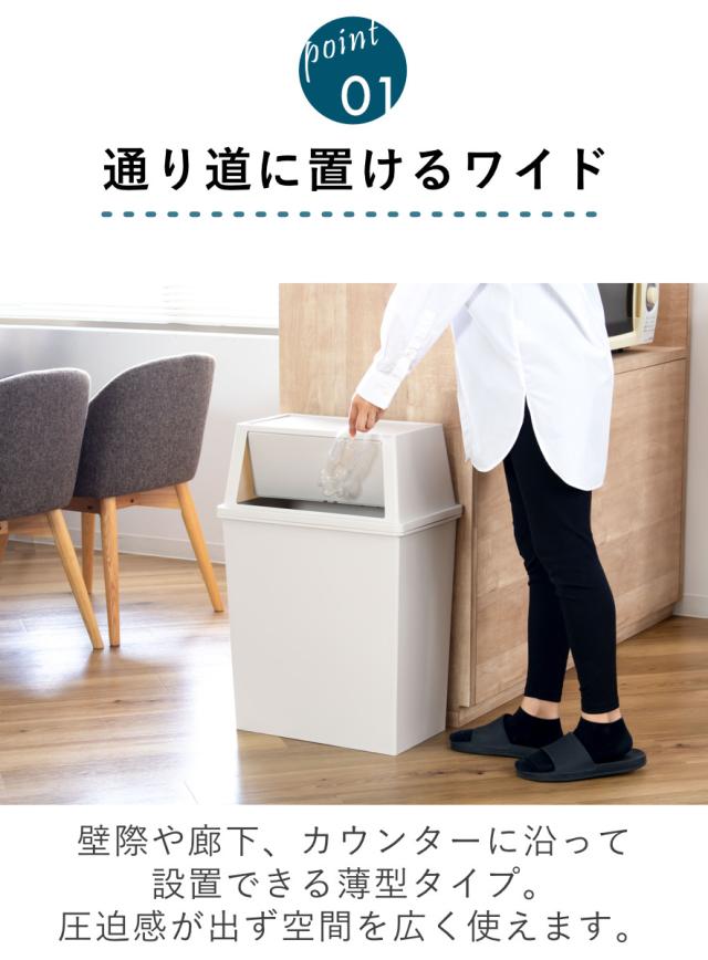 ゴミ箱 45L ワイド 積み重ね ( ごみ箱 45リットル 奥行28 分別 ふた付き キッチン ダストボックス スタッキング フロント プッシュ ふた付 前開き 蓋付き プラスチック製 くずかご ダストBOX 分別ゴミ箱 分別ごみ箱 シンプル )