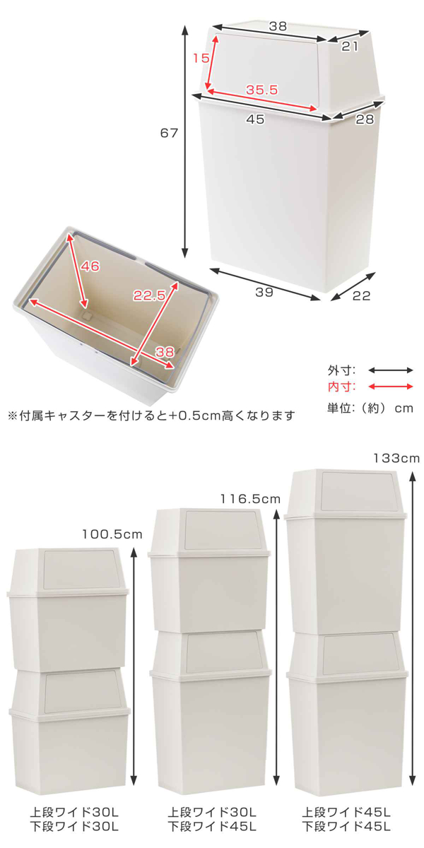 タテの空間を有効活用、上下に分別できる積み重ねダストボックス