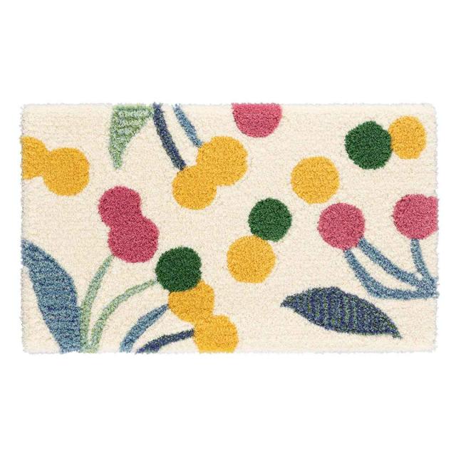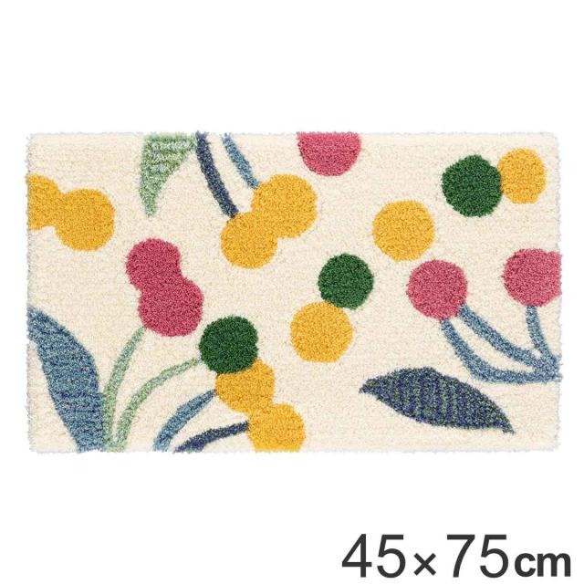 玄関マット 室内用 45×75cm 厚さ1cm ポポロマット ( 玄関 マット ドアマット 室内 滑り止め 花柄 ホワイト 洗面所 リビング おしゃれ 玄関用品 ラグ 防ダニ加工 キッチンマット ワンポイント インテリア )