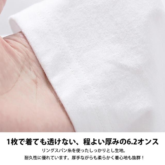 - 薄くなくしっかりとしたTシャツです。首周りもヨレてきません。 ただまったく伸びないので大きめのサイズをおすすめします。