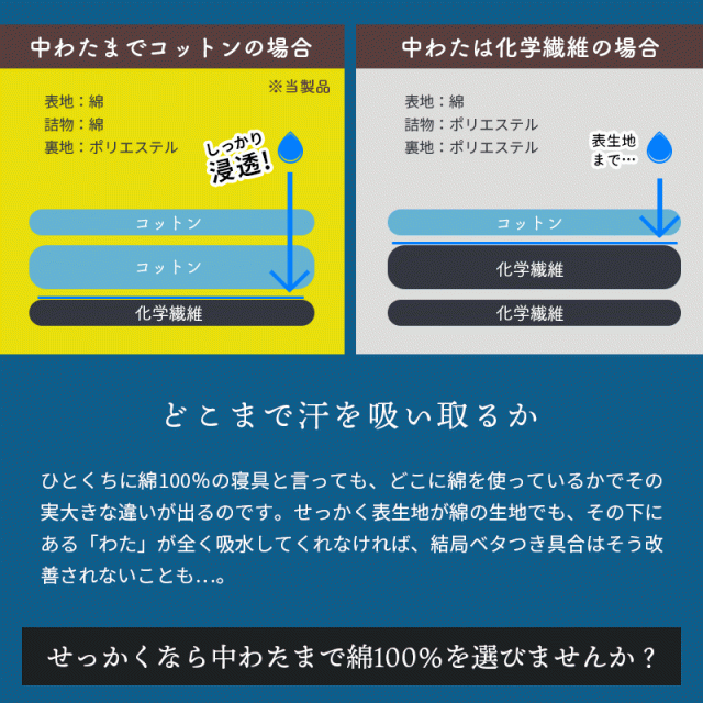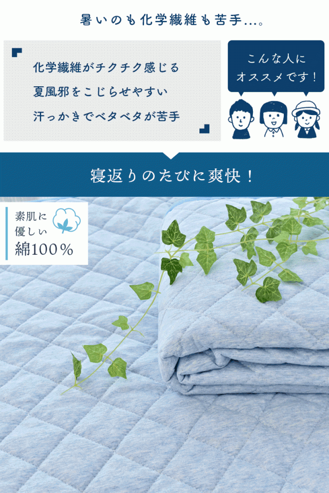 汗かきさんにお勧め!オールシーズン使える中わたまで綿100%の敷きパッド!