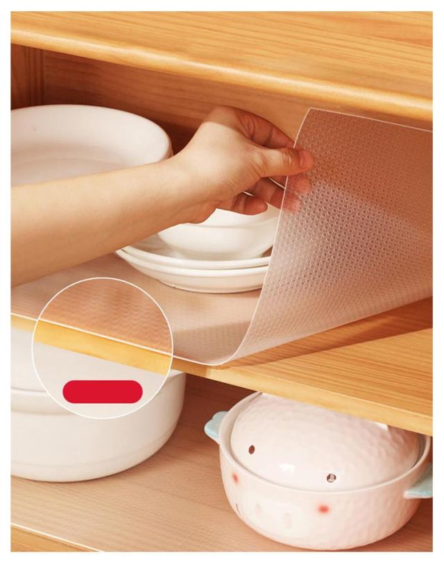 | 食器棚の棚板に敷くだけで、消臭・抗菌・防カビが期待できる食器棚シートです。 環境に優しいEVA素材で作られた、損傷や汚れのより良いクッション効果と家具の保護のためだけでなく、非毒性である、非常に防水性、頑丈で耐久性があります。 裏面にスベリ止め加工を施していますので、食器の出し入れの際などに、クロスがズレたりシワが寄るのを防ぎます。 手洗いできるので、お手入れもカンタン! 設置場所に合わせて好きなサイズにカットできるので、キッチンの食器棚や冷蔵庫はもちろん、押し入れ、下駄箱など、様々な場所で使えるシェルフライナーです。 除湿、消臭、汚れ防止に欠かせないキッチン用品。 | |